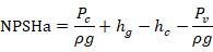 - 可用的淨正吸水頭(NPSHa, available NPSH)為泵浦入口之管路系統的絕對壓力值換算之水柱高度 (如圖藍虛線),定義為
