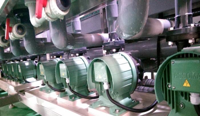 One section of the plating line consists of six pumps working in parallel. Each pump feeds into a filter followed by spray nozzles in the plating tank. The process is monitored using a flow meter installed after the filter. To ensure process stability, all six pumps must provide the same operating pressure.