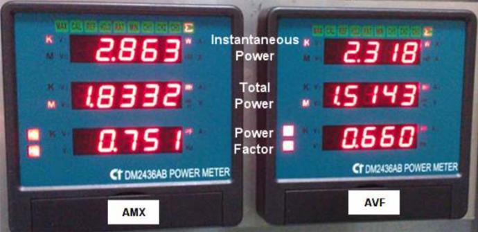 Replace one of the canned pumps with our AVF model and install a set of power monitors to record energy consumption. Since the pump speeds change with the product, the total power consumed by both pumps is recorded after 29 days in operation (shown below)