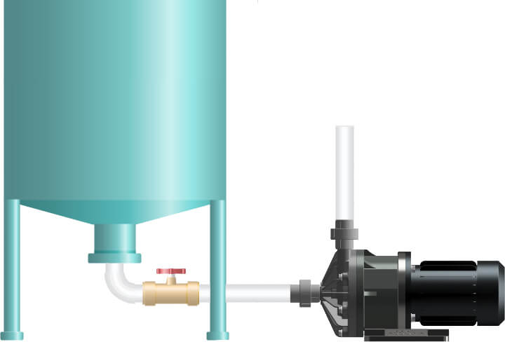 A positive suction system means the liquid level in the suction tank is above the pump (see Fig. 1). Priming of the pump can be accomplished simply by opening the valve of the suction piping. Gravity will push the liquid from the suction tank through the suction piping into the pump.