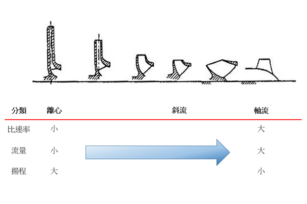 比速率决定了泵浦是属于哪一种类型(轴流式、斜流式或离心式),相同比速率代表有相似的叶片形状。
